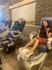 Little Lady Spa Treatment – Ages 4-10. Submerge your feet into a tub of hot jetted water, while relaxing in our Human Touch pedicure massage chairs.